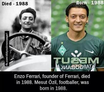 Great look alike, Enzo Ferrari founded the Ferrari but died in 1988. Interestingly, Mesut Ozil a midfielder was born in 1988,and they both look alike. What do you think?